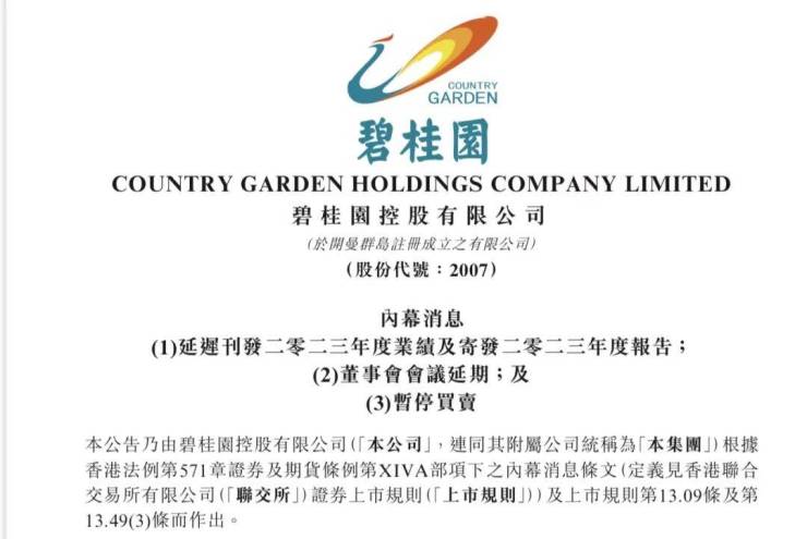 碧桂园突发公告!业绩延迟发布,股票或将停牌