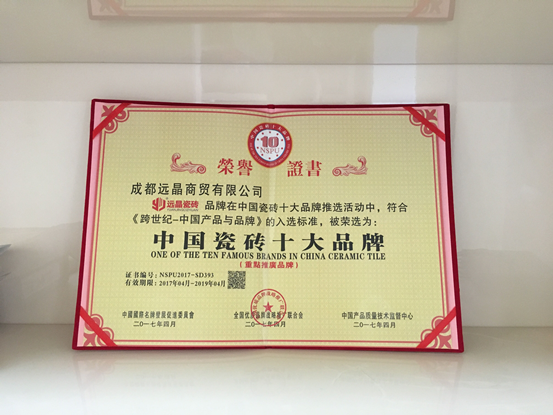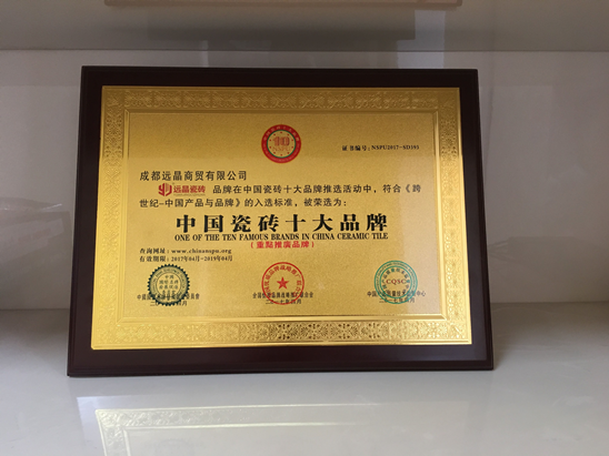 远晶瓷砖荣获中国瓷砖十大品牌 专业铸就高品质
