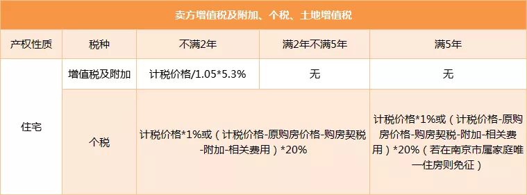 南京较新二手房交易税费一览: