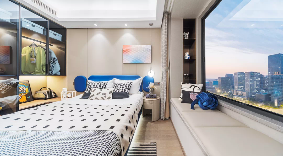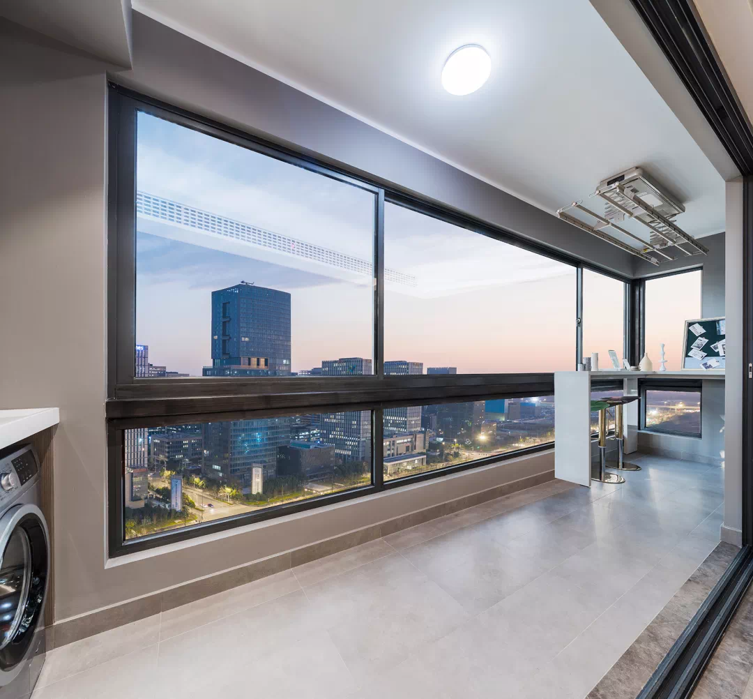 项目南向立面的窗墙比约0.45,差不多半个立面都是窗户,阳台反坎设计仅约27cm,营造了近乎是落地窗的观感。