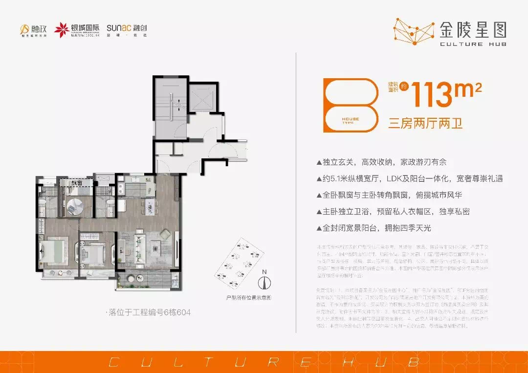 建面约113平户型为三房两厅两卫设计,三开间朝南,约5.1米纵横宽厅加上LDK设计,让采光和空间感更好。