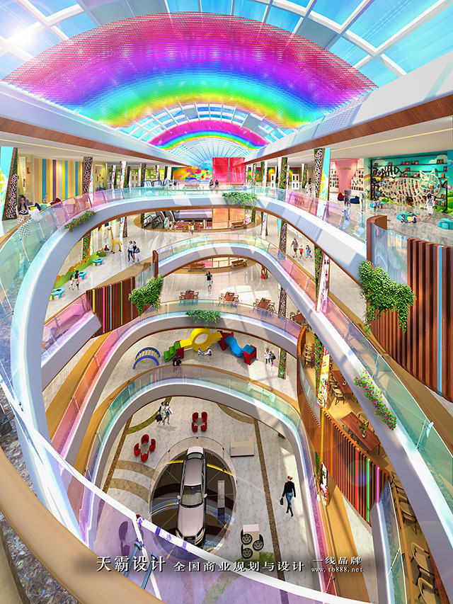 哈尔滨冬季漫长,人们更渴望大自然色彩缤纷的感觉;要满足消费者们的这种渴望的强烈欲望为天霸设计师们带来了设计灵感。在此背景下,哈尔滨彩虹城以“绿色共生”为设计理念,设计师们通过创意还原大自然与雨后彩虹的清新的生态环境,让顾客在冬季白茫茫的冰天雪地中欣赏自然绿洲的美景。“绿色共生”设计主题不仅为消费者带来了与众不同的购物、休闲空间,也为哈尔滨彩虹城塑造了独特的品牌形象,有效提升项目市场竞争优势。