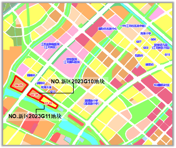NO.新区2023G10和与NO.新区2023G11地块(07-07地块)东西相邻,两幅地块紧邻国际健康城片区,拥有已建成的鼓楼医院江北国际医院和正在建设中的国际化名医中心等多所医疗机构。