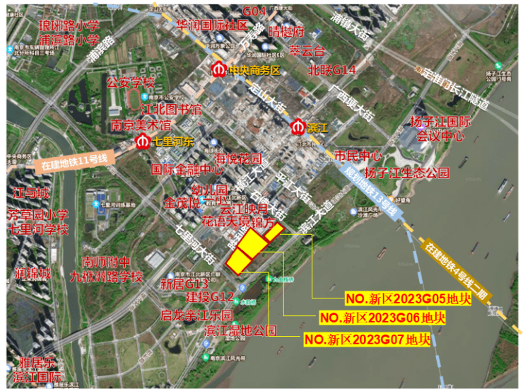 NO.新区2023G05、新区G06、新区G07地块位于滨江第一线,三幅地块分别南北相邻,该批地块紧邻扬子江生态公园,可尽享滨江景观风貌。