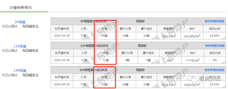 看房哥也统计了金九银十期间楼盘开盘的去化情况,事实没有预想中的惨烈,有些盘卖的还算不错。