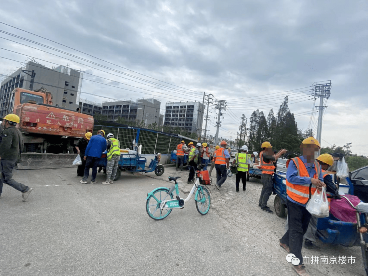 因为是中午休息时间,一路可以看见很多买饭的工人,路边还可以看到在地上午休的工人,天气这么热,真的很不容易了。