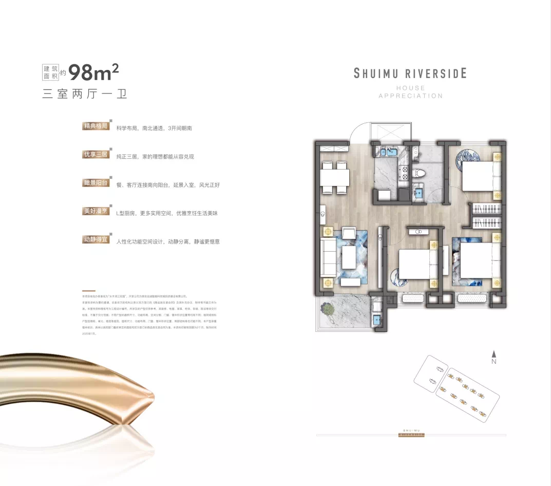 户型分布上,98㎡为三栋楼中间户,130㎡为D6号楼边户,160㎡为D1、D2号楼边户。