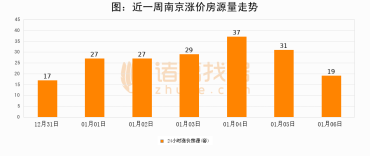 根据诸葛找房数据显示,南京24小时涨价房源量为19套,较01月05日减少12套,环比下降38.7%。与此同时,涨价房源占比小幅回落,对于购房者来说是一个入市窗口期,购房者可抓住时机入市。