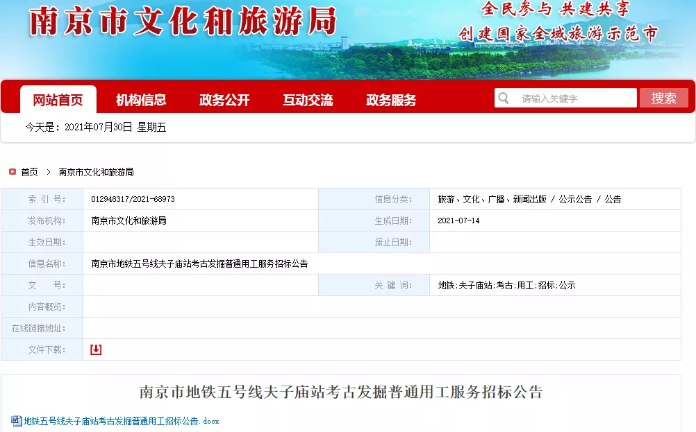 据南京市文化和旅游局公示,地铁5号线夫子庙站将进行考古挖掘,目前已开始招标。也就是说,南京地铁五号线大概率要延迟通车了。