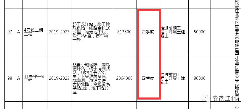 我注意到,在此次文件中,备受瞩目的江北新区的4号线二期和11号线一期工程,计划开工时间变为了四季度。这让我有些吃惊。