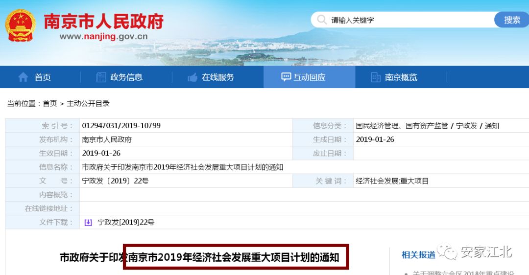 南京市政府发布了《市政府关于印发南京市2019年市政府投资项目计划的通知》,其中江北新区涉及的重点项目与此前官方文件大同小异。但在开工时间上,我却注意到了一些变化……