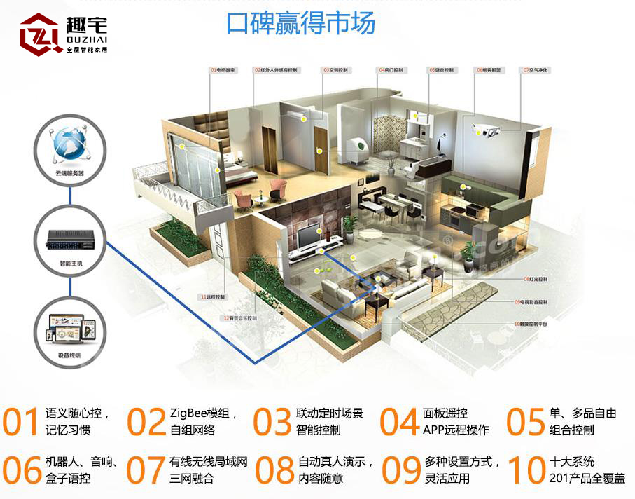 《趣宅智能家居》智能家居产品将会越来越普及,智能家居行业现状一片繁荣,我们有理由相信,随着产品分类越来越细化,产品种类越来越多,未来每个家庭都会使用智能家居,真正步入智慧生活时代。