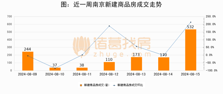 【南京成交日报】08月15日新房成交532套、二手房309套;涨价房源74套