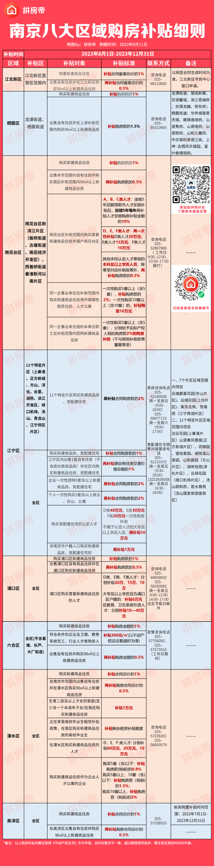 新政后的首个周末,南京8区陆续发布购房补助细则,分别是江北新区、雨花台区、栖霞区、江宁区、浦口区以及六合、高淳、溧水。各区补助政策不一样,范围也不一样。