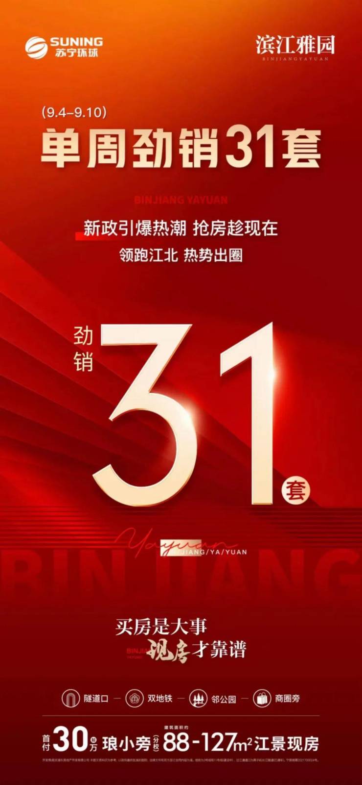 桥北的滨江雅园,上周共卖了31套!高新的荣锦瑞府8小时卖了9套!