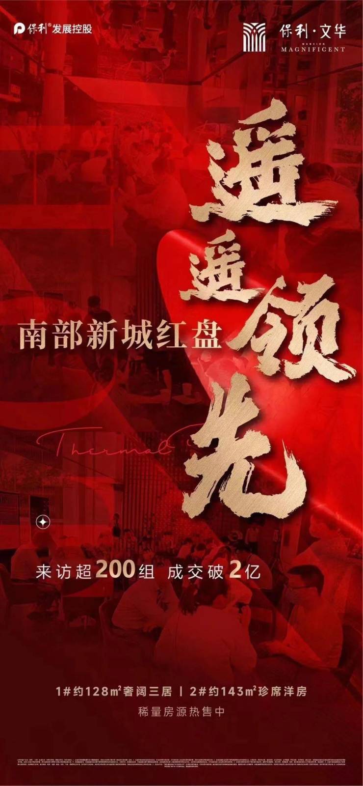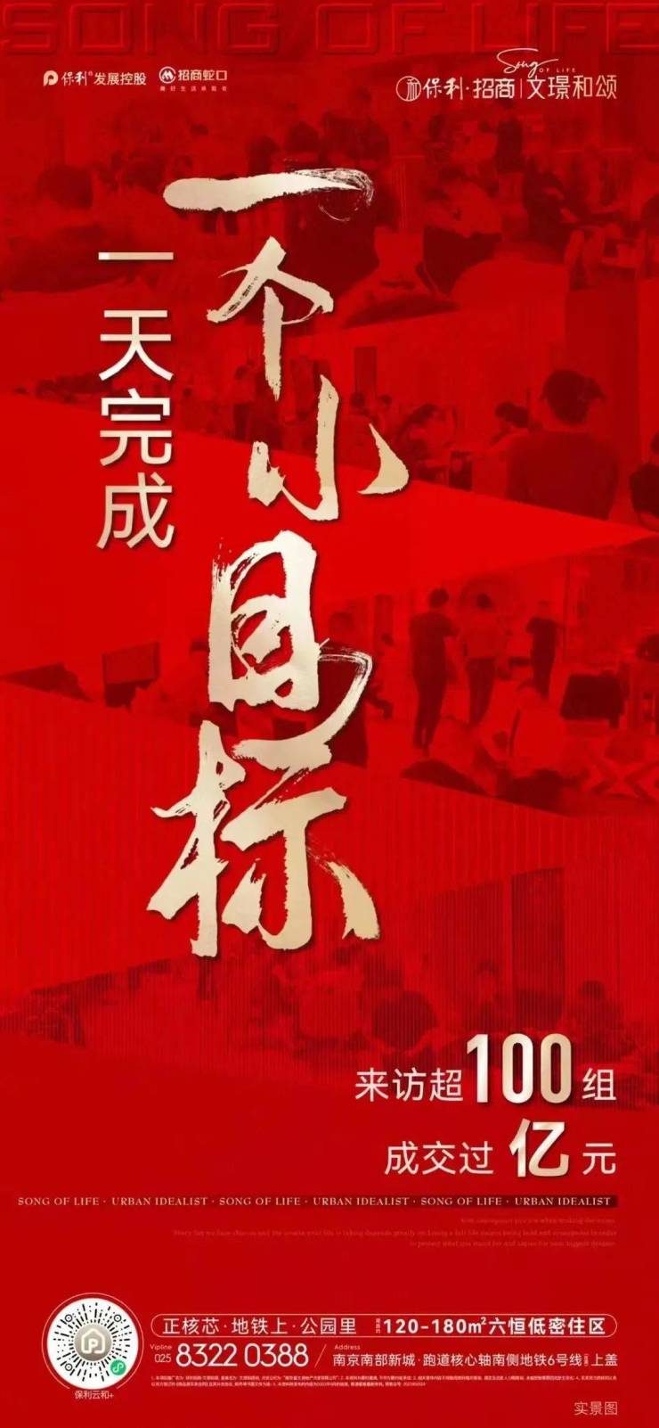 大校场保利招商文璟和颂一天完成一个小目标,新政后的来访量超过100组,成交过亿;保利文华来访超200组,成交破2亿。