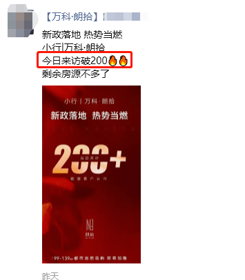小行万科朗拾二期一天来访量破200组,剩余房源不多了。