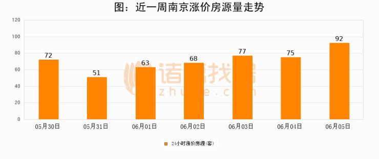 根据诸葛找房数据显示,南京24小时涨价房源量为92套,较06月04日增加17套,环比上涨22.7%。与此同时,涨价房源占比小幅扩大,业主信心有所提升。