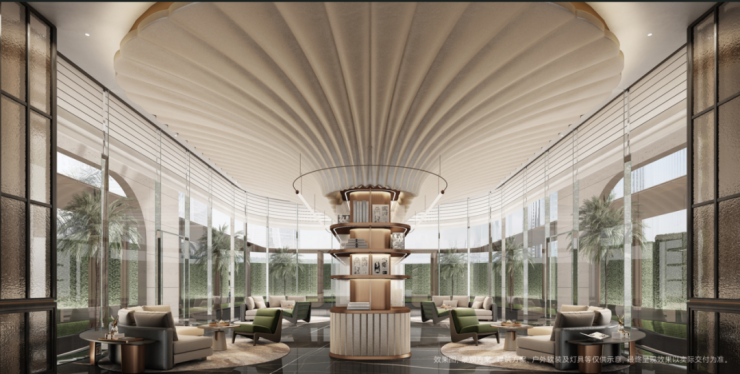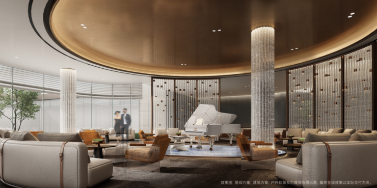 比如入户单元门采用了榴形弧线设计,独具艺术性与美感。据悉各楼栋打造星级酒店入户式大堂,约6.3米挑高,拥有跟宝格丽酒店同款的背景墙质感。