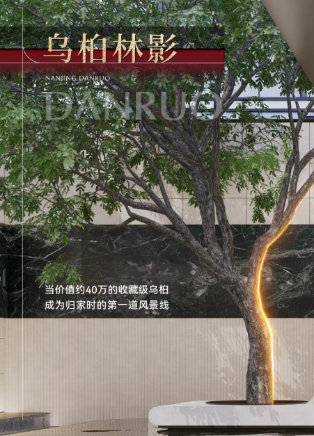 除此之外,项目还寻得了一株价值约40万的收藏级乌桕,放在了业主归家的第一道风景线上。