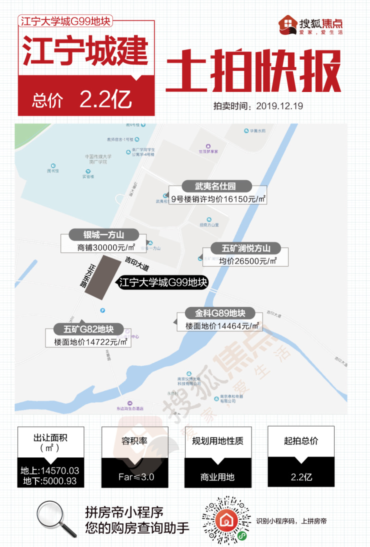 该地块紧邻五矿G82地块,G82地块的楼面价为14722元/㎡,金科江宁大学城G89地块楼面价为14464元/㎡。