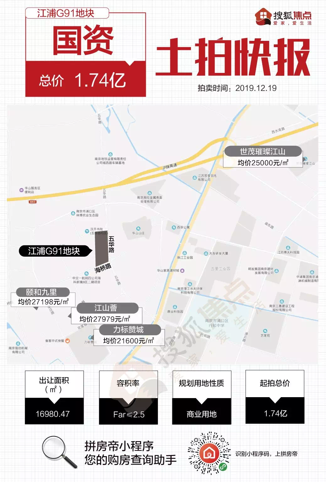 2、江浦G91地块经过1轮竞价,被国资拿下,成交总价1.74亿。