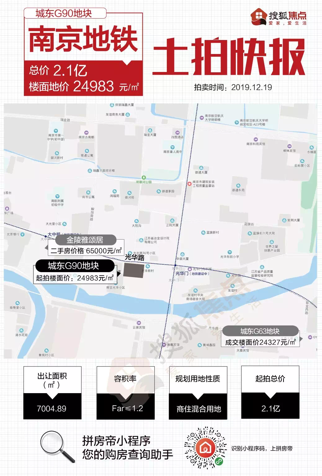 1、城东G90地块经过1轮竞价,被南京地铁拿下,成交楼面价24983元/平。