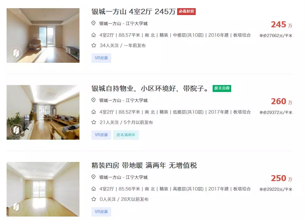 银城一方山二手房房价 数据来源:南京链家