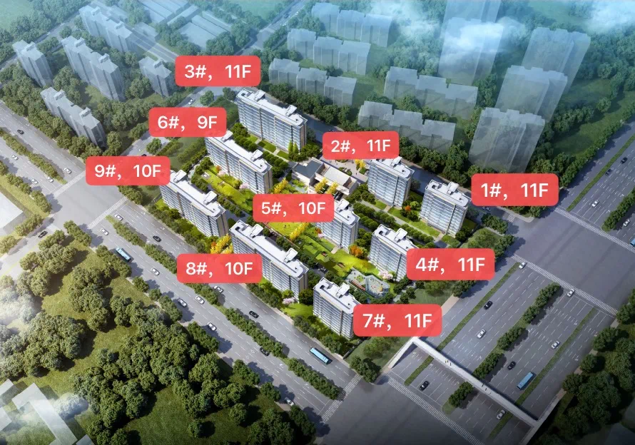 项目与4号线汇通路地铁站直线距离约700米,规划了11栋精装高层住宅及950㎡沿街社区商业,容积率约2.0,楼间距高达40-63米。