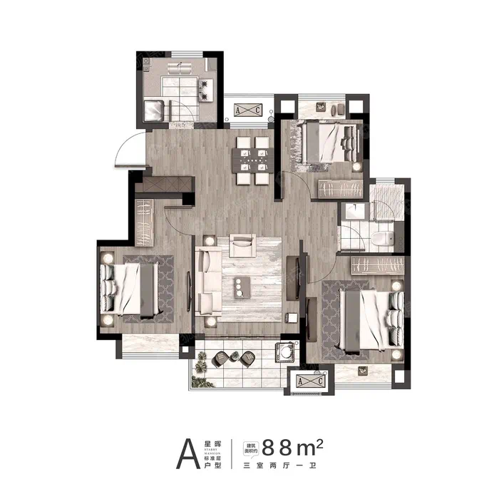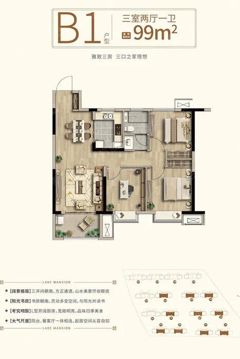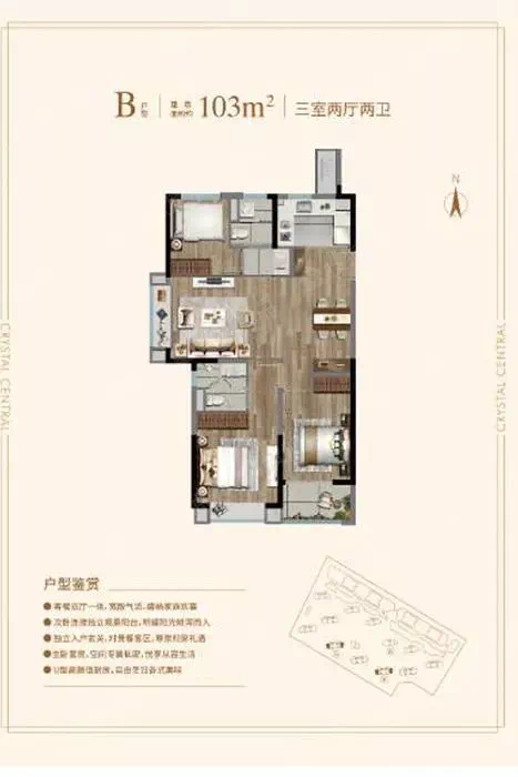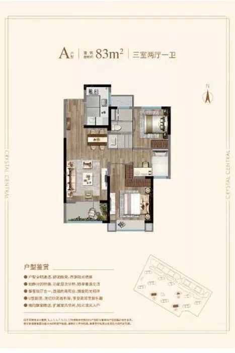 项目目前在售87-105㎡地暖三房,单价约1.6万/平起,首付40万起,首期首付约15万起。此外,每一栋的1层都有下跃户型,面积比其他楼层大50㎡左右。想了解的朋友可以直接联系置业顾问张静。其中87㎡户型为精致三室两厅一卫设计,全明格局,大开间短进深,南北通透,三开间朝阳,性价比非常高。105㎡户型是主打改善型户型,位于东西边户,三房两厅两卫设计,整体户型非常方正。户型图如下:
