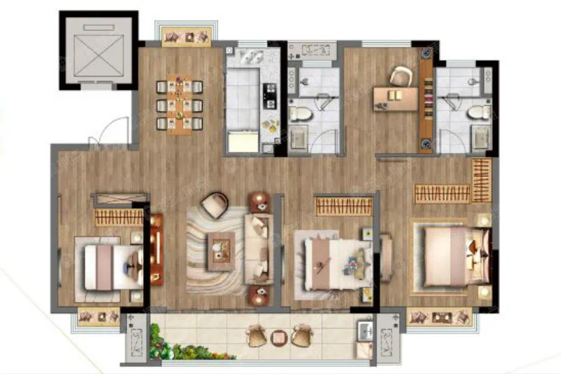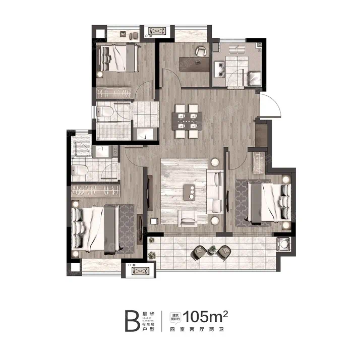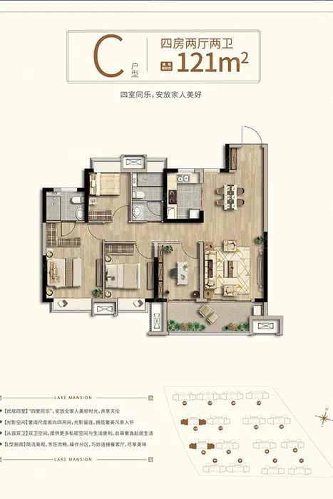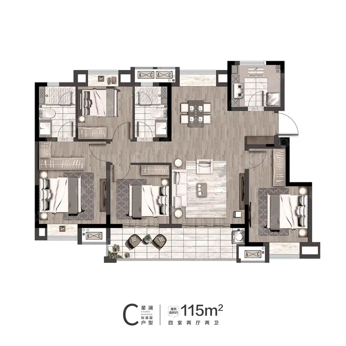 项目目前在售88-115㎡精装洋房,均价1.8万/平左右,首期首付较低15万起。其中户型面积分别有约88㎡三房、约105㎡四房、约115㎡四房三种户型。项目户型南北通透,采光通风上佳。
