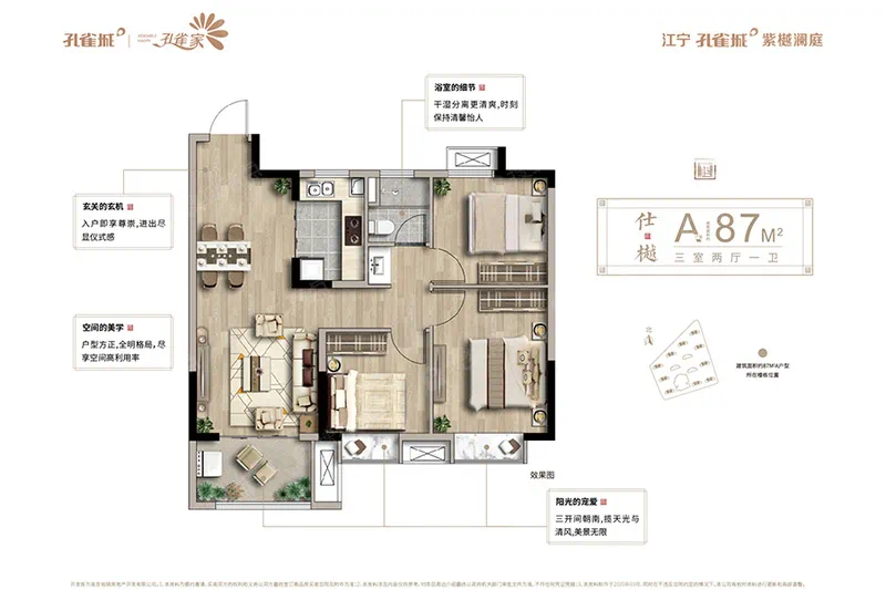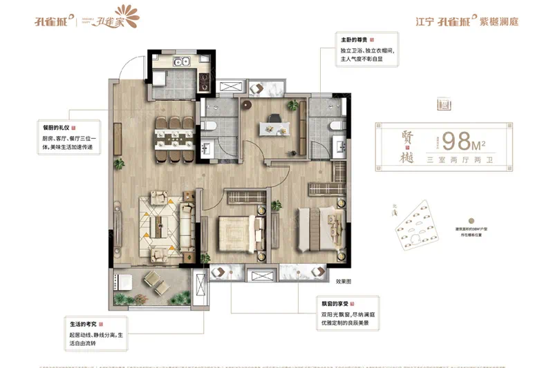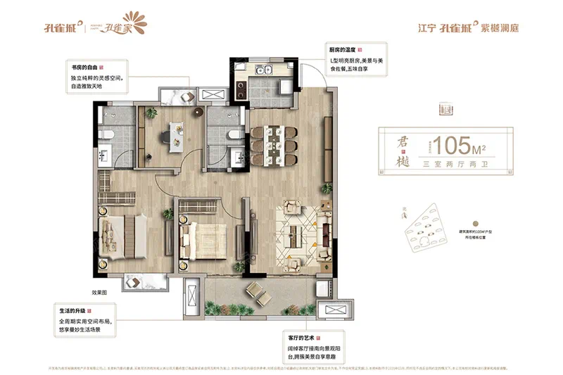 项目是由银城国际、下关城开、孔雀城联合开发,共规划20栋7-8层精装电梯洋房,容积率仅1.5。而且产品为装修+中央空调+地暖+新风系统交付,是溧水空港板块目前少有一家配齐“三大件”的楼盘。