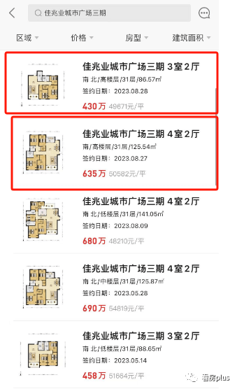 今年8月,小区同户型成交的房源总价达到635万,现在这套房源的总价居然比87㎡的小户型还要便宜。