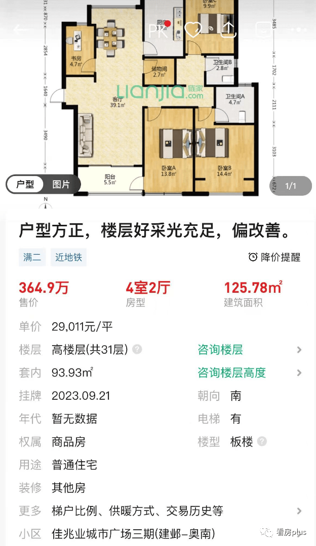 这两天被河西南佳兆业三期的一套二手房刷屏了,约125㎡的房子,只卖364.9万,折合单价仅约2.9万/㎡!