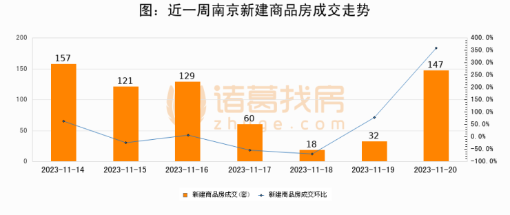 【南京成交日报】11月20日新房成交147套、二手房365套;涨价房源81套