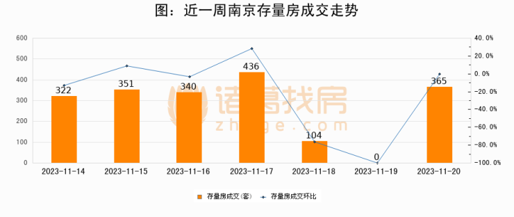 从存量房来看,2023年11月20日南京存量房单日成交365套,比昨日增加365套,环比上涨0%。从近一周存量房成交来看,南京存量房日均成交套数为274套,11月20日单日成交365套,高于近一周平均水平33.2%。