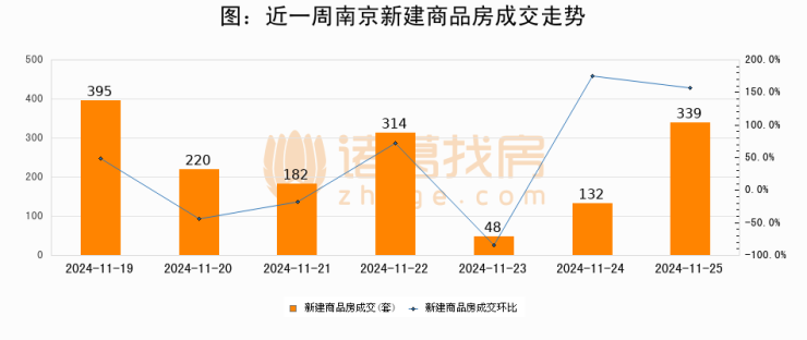 【南京成交日报】11月25日新房成交339套、二手房294套;涨价房源20套