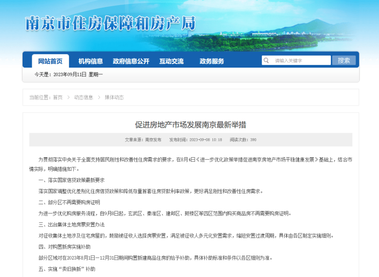 近期,南京出台多项利好性新政,内容涵盖:落实国家信贷政策最新要求、取消商品房限购、出台集体土地房票安置办法、对购置新房实施补助、对“卖旧换新”再实施补助、推出“换新购”服务。