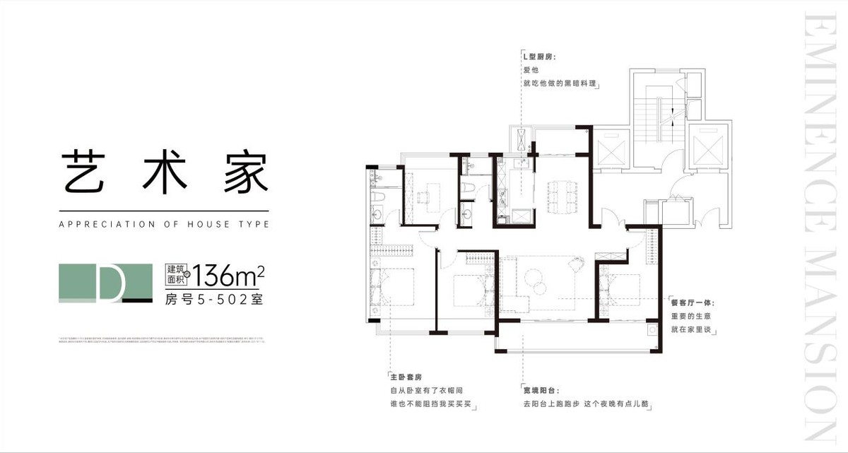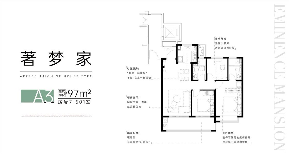 项目推出约97-136㎡成长户型,让家的价值历久弥新。配合六重智慧精装系统,将科技感和品质感融入生活的每一个角落。