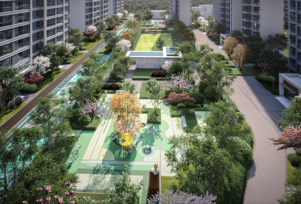 景观方面,打造全龄环氧配套共享的“森语+社区”,社区内部多景观节点打造,纵横双中轴景观设计,营造度假般舒适的环境,生活更有质感。