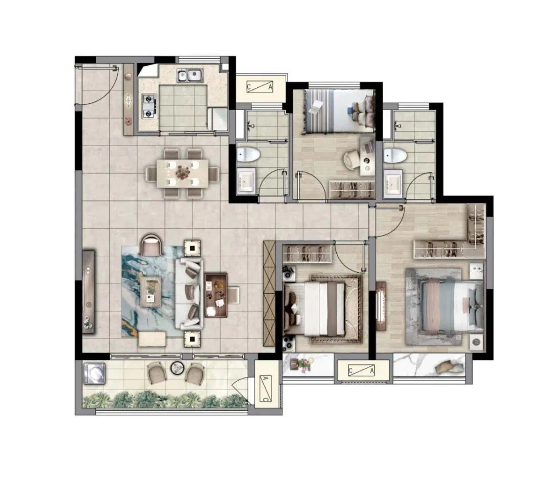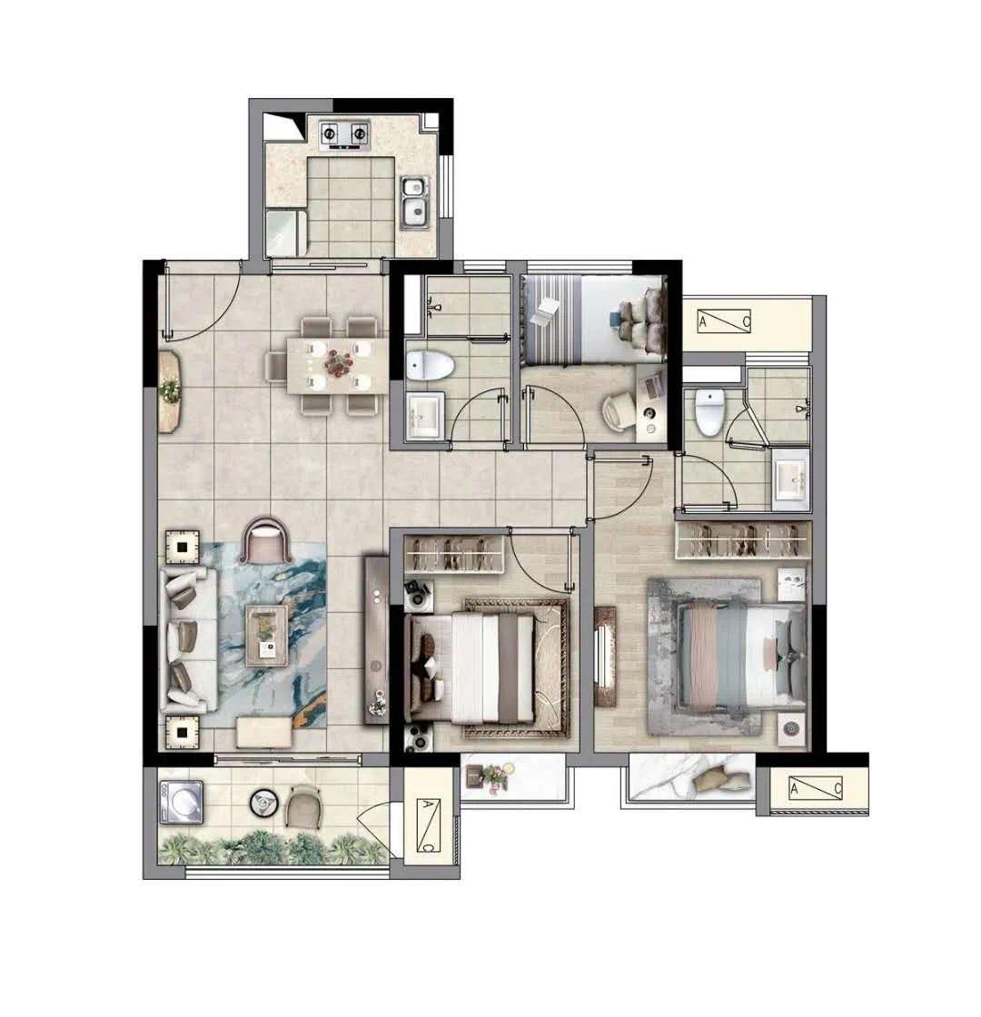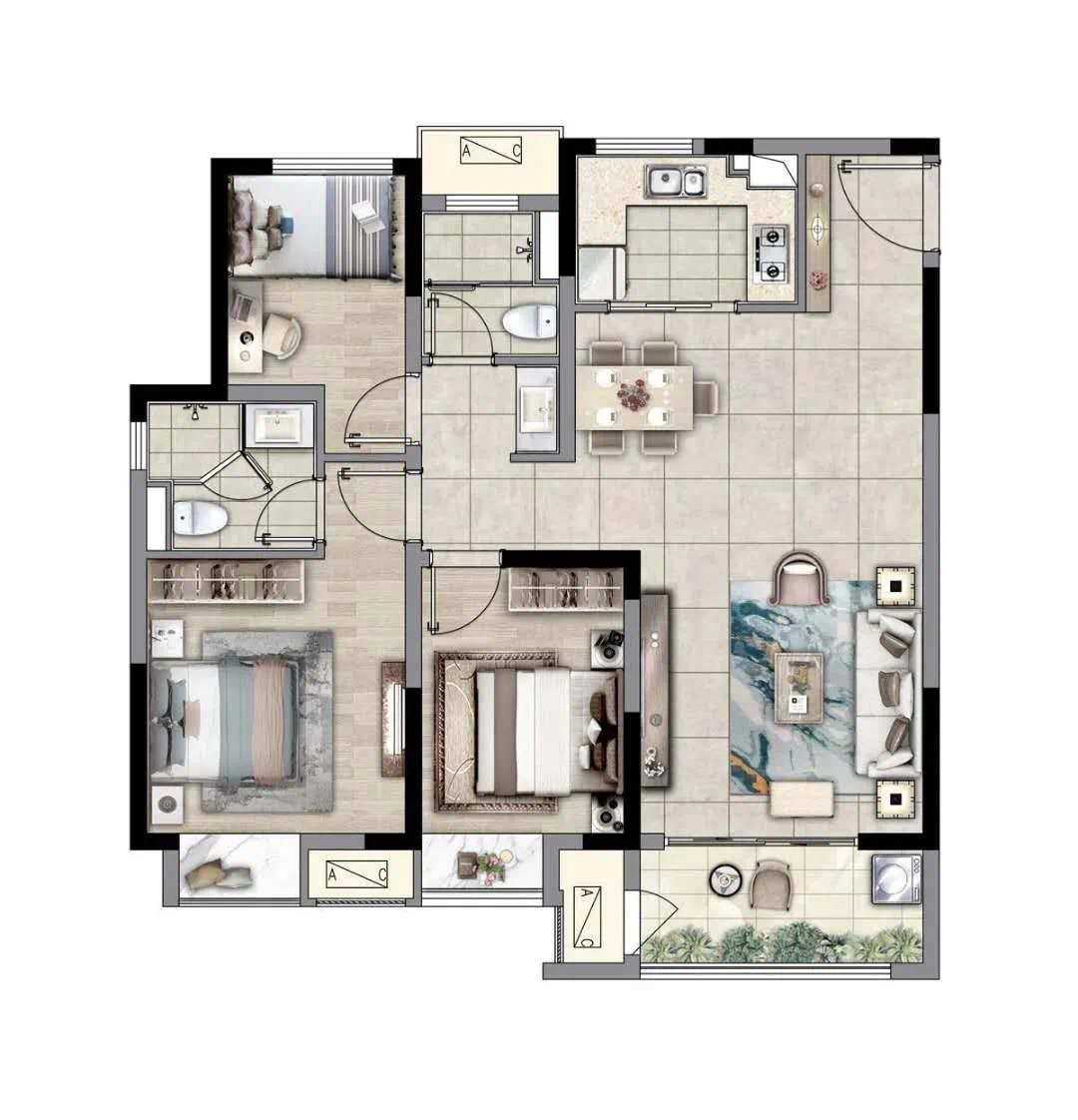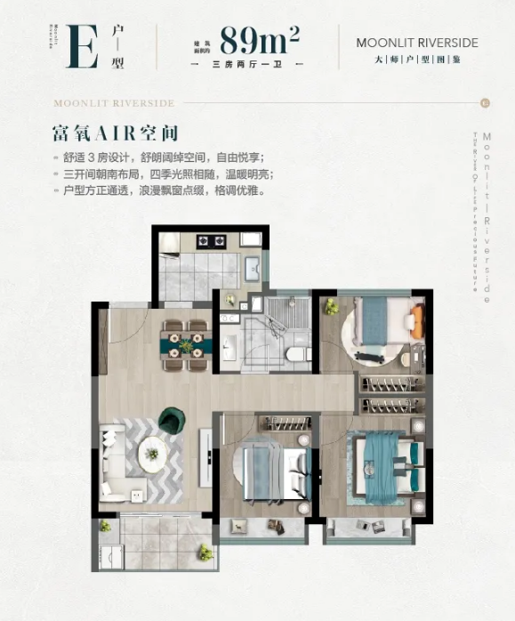 项目目前公布了五户型,89㎡(三室两厅一卫)、103㎡(三室两厅两卫)、109㎡(三室两厅两卫)、116㎡(四室两厅两卫),其中89㎡户型有两种,三房起步。
