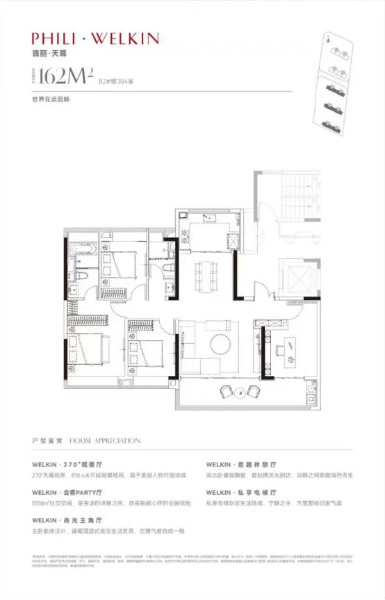 翡丽铂湾只打造了两种户型,分别是162㎡和189㎡,都是四房设计,起步户型门槛也是四叶草中较大的。