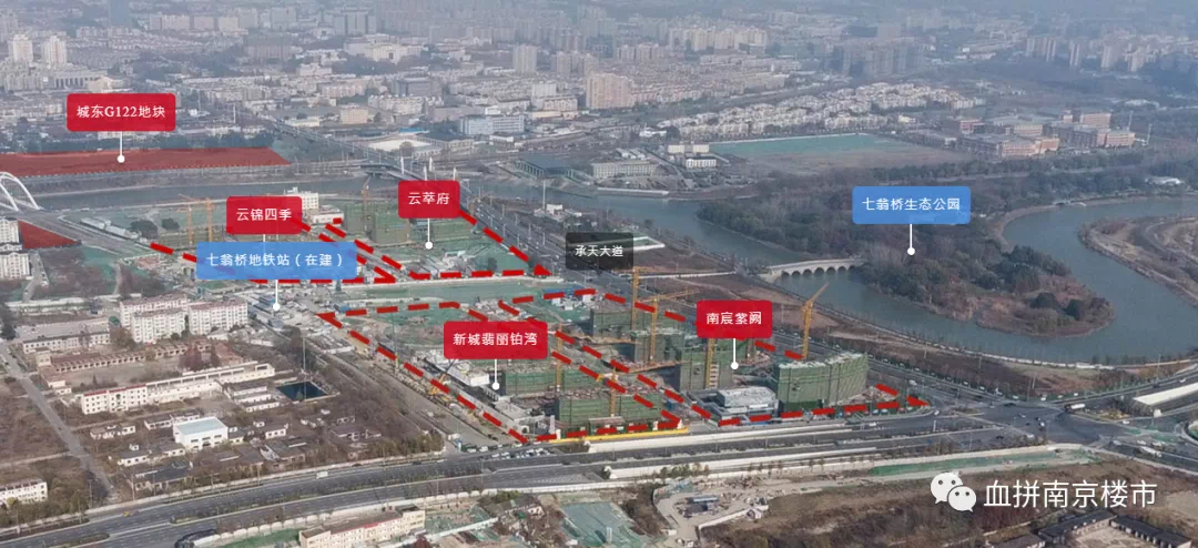 4.从区位来看,翡丽铂湾紧邻秦淮河、七桥瓮湿地公园,距离地铁5号线七桥翁站(在建)约100米,配套还是比较齐全的。