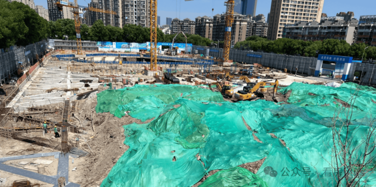 整个地块面积不大,但还没有出正负零,目前施工主要集中在下沉式庭院部分。相比迟拿地的几个项目,进展稍慢。