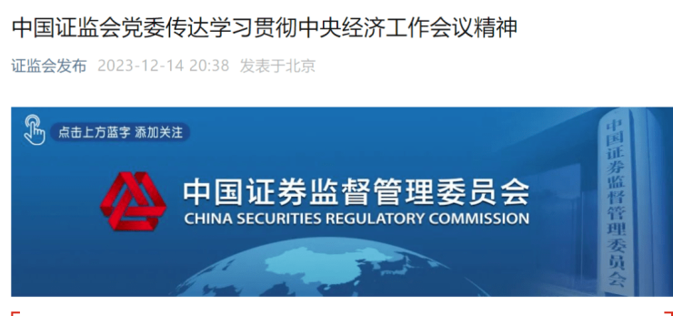 会议认为,这次中央经济工作会议是在深入贯彻落实党的二十大精神、全面推进中国式现代化开局之年召开的一次重要会议。习近平总书记的重要讲话高屋建瓴、视野宏阔、思想深邃,全面总结2023年经济工作,深刻分析当前经济形势,系统部署2024年经济工作,具有很强的政治性、思想性和指导性,为做好明年和今后一个时期的经济工作提供了根本遵循和行动指南。李强总理对深入贯彻落实习近平总书记重要讲话精神、扎实做好明年经济工作提出要求。证监会系统要认真领会会议精神,切实把思想和行动统一到党中央对形势的科学判断和对经济工作的决策部署上来。