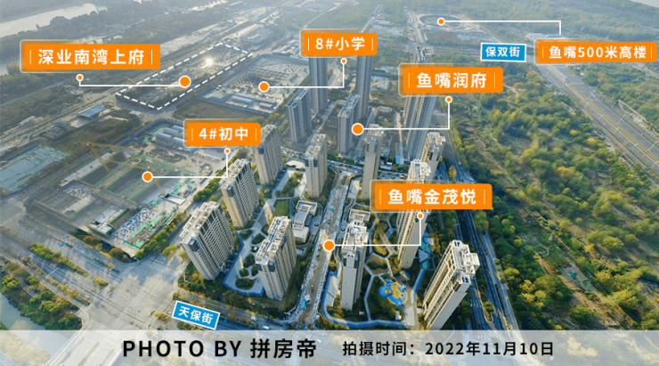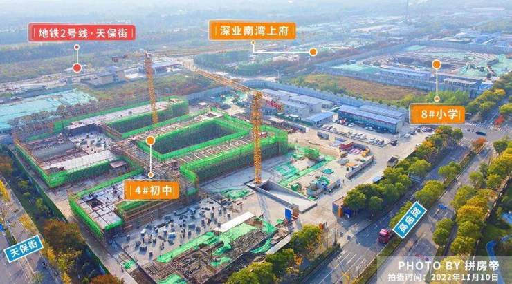 随着鱼嘴润府、鱼嘴金茂悦完成交付。到2022年11月上旬,与住宅相邻的4#初中、8#小学在建中,并均有建筑出地面了。