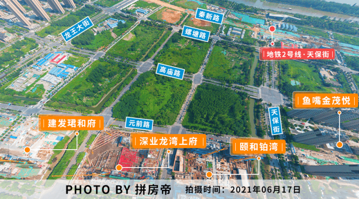 2021年6月中旬,这块区域大部分还是空地状态,只有元前路北侧的建发珺和府、颐和铂湾、深业龙湾上府三个项目施工建造。