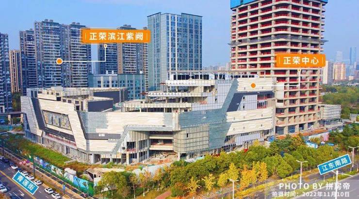 从摩天轮沿龙王大街向南走两个路口,就是江东南路中轴四大商业综合体。目前,河西金地广场已经开业,旁边的正荣中心正在外立面装修,据悉已完成招商。