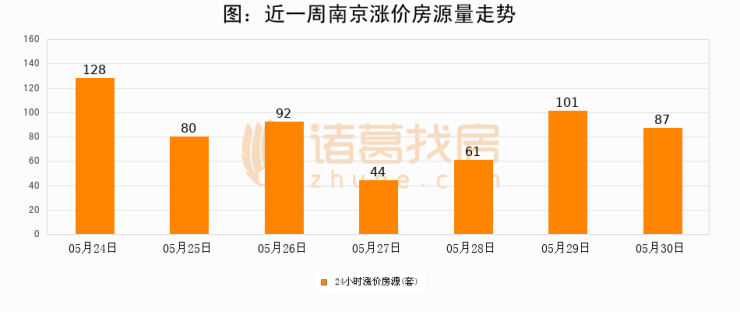 根据诸葛找房数据显示,南京24小时涨价房源量为87套,较05月29日减少14套,环比下降13.9%。与此同时,涨价房源占比小幅回落,对于购房者来说是一个入市窗口期,购房者可抓住时机入市。