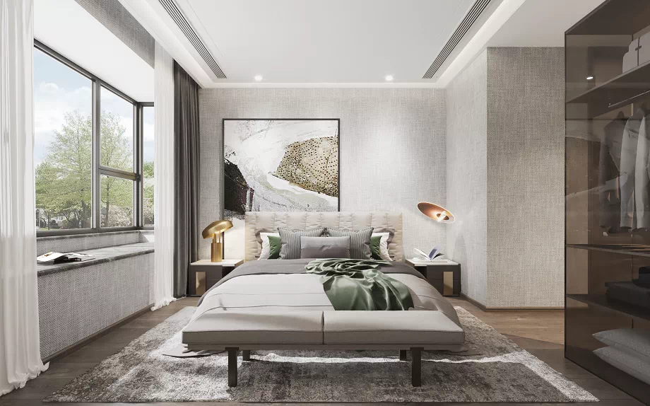 更吸引人的是,双套房设计的主卧,也相当开阔,堪比五星级酒店的总统套房,里面还可以兼容书房、步入式衣帽间!